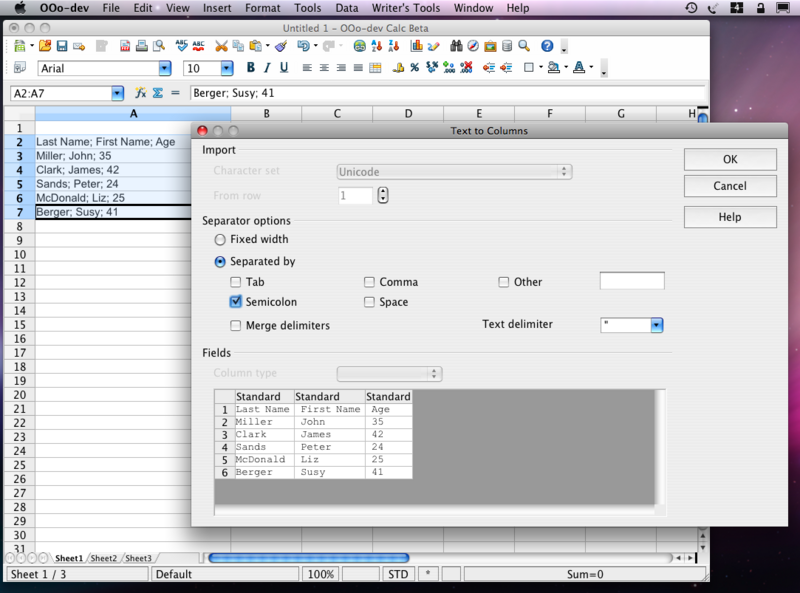 Transformation of CSV Data Inside Cells into Columns within CalcIf data imported or copied into a spreadsheet ends up in one column even though the information includes different data fields; the text-to-columns feature allows splitting up the fields into separate columns. |